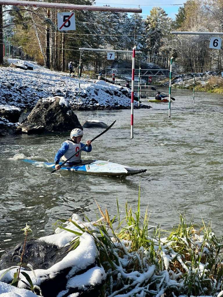 Соревнования украсили не только мощные выступления слаломистов, но и удивительно красивые снежные берега сибирской осени 🍂 ❄️